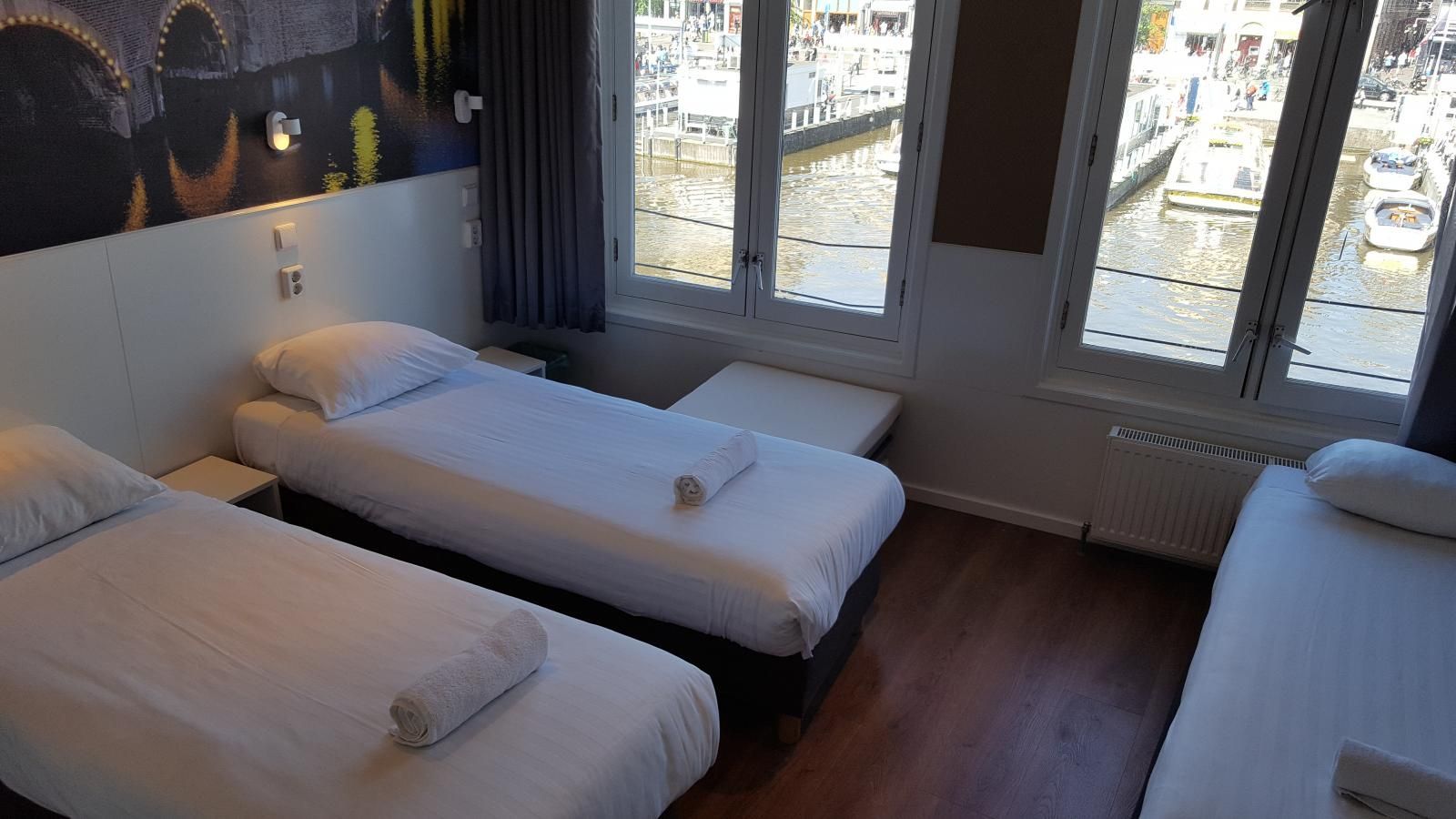 The Triple room canal view is simply equipped with 3 single beds, a TV, free WiFi, and a private shower and toilet. The room is facing to the beautiful canals of Amsterdam.